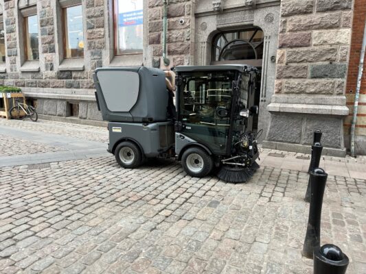 ”Førerhuset er meget større end på min gamle maskine, og selvom den ser vældig stor ud, kan den køre på halvanden fortovsflise. Det er vigtigt i midtbyen. Den store rude bag sædet giver mig bedre udsyn, hvilket er guld værd, når man arbejder blandt mange mennesker” siger han.